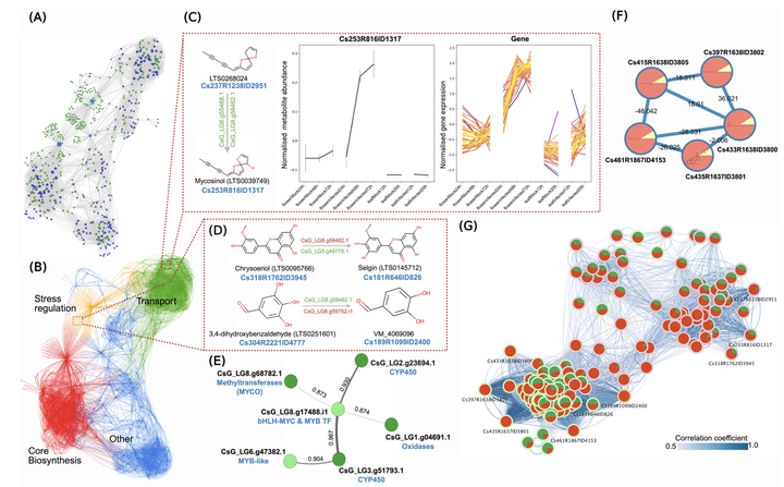 BiorxivBotrytis cinerea is a major threat to ornamental crops, yet floral defence responses remain poorly understood. In Chrysanthemum seticuspe, we found that flower petals, unlike leaves, mount a localized resistance response resulting in red spots appearing at fungal penetration sites. We observed an intensification of the coloured response as infections progressed. To investigate the basis of this phenotype, we performed a time course paired transcriptomic and metabolomic analysis on mock inoculated vs B. cinerea inoculated petals and leaves. Infection triggered strong transcriptional reprogramming in petals, with clear induction of phenylpropanoid and flavonoid/anthocyanin pathway genes and candidate regulators, consistent with the visible pigmentation. Metabolite profiles reflected this response, showing time dependent accumulation of infection induced flavonoids such as quercetin, tilianin, and their derivatives, as well as cyanidin-based anthocyanins in infected petals. Integrating both omics datasets with MEANtools highlighted an anthocyanin associated transcript metabolite module, including a module putatively involved in the synthesis of polyyne type phytoalexins. Antifungal assays demonstrated that selected flavonoids and cyanidin derivatives inhibit B. cinerea in a dose dependent manner, supporting a direct antifungal role of these compounds. Altogether, our results show that C. seticuspe petals deploy a spatially confined, multi-layered chemical defence in which pathogen induced flavonoids and anthocyanins operate as active components of resistance against a necrotrophic pathogen. We anticipate that future paired omics analyses in combination with spatial omics and bioactivity assays will yield insights into the role of specialised defence molecules in response to biotic and abiotic stresses.
